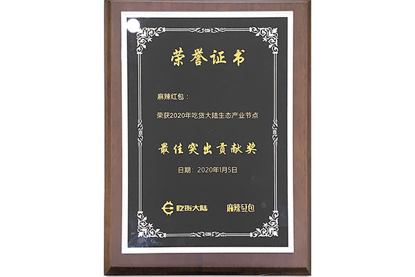 2020年吃货大陆生态产业节点最具突出贡献奖